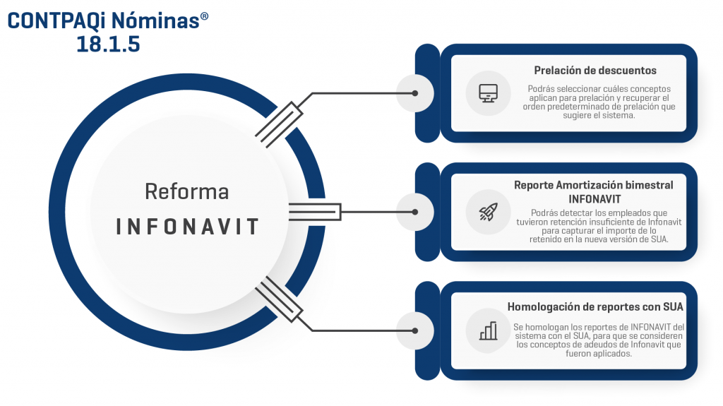 La nueva versión CONTPAQi Nóminas® 18.1.5, liberada el 10 de septiembre de 2025, llega para dar cumplimiento a la Reforma al artículo 29 de la Ley del INFONAVIT y a la homologación con el SUA 3.6.7 y 3.6.8. Esta actualización del sistema de nómina más usado por contadores, despachos y empresas en México es fundamental para que los patrones y administradores de nómina cumplan con las nuevas disposiciones que establecen que los descuentos de créditos INFONAVIT no se suspendan por ausencias o incapacidades, además de incorporar reportes homologados, configuraciones de prelación de descuentos y herramientas para evitar netos negativos en los recibos. Asimismo, el INFONAVIT y el IMSS otorgaron una prórroga oficial, moviendo la entrada en vigor de la reforma del 4º bimestre al 6º bimestre de 2025 (noviembre-diciembre), con fecha límite de entero al 17 de enero de 2026, lo que brinda a las empresas un plazo adicional para ajustar sus sistemas, actualizar a CONTPAQi Nóminas 18.1.5, y validar cálculos en el SUA 3.6.8. Si eres usuario de CONTPAQi Nóminas, administrador de recursos humanos o contador responsable de la nómina electrónica, esta versión es imprescindible para evitar inconsistencias en las retenciones, cumplir con la ley y garantizar procesos confiables en tus cálculos de créditos INFONAVIT y seguridad social.