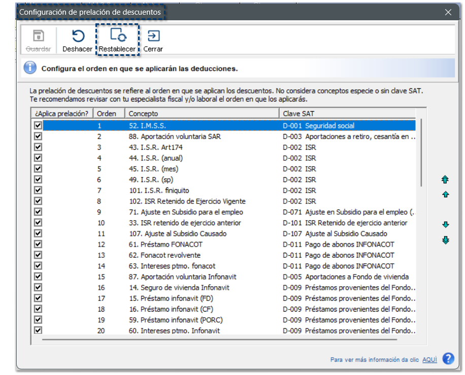 Ahora podrás definir el orden en que se aplican las deducciones: