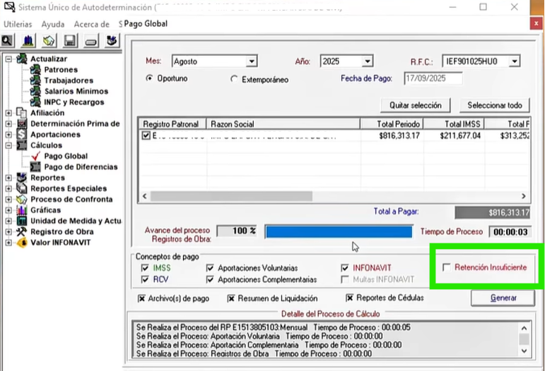 Disponible en IMSS/INFONAVIT → Reportes → Amortización Bimestral INFONAVIT – Retención insuficiente: