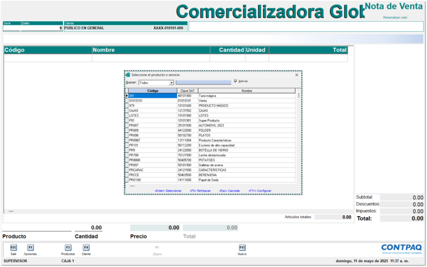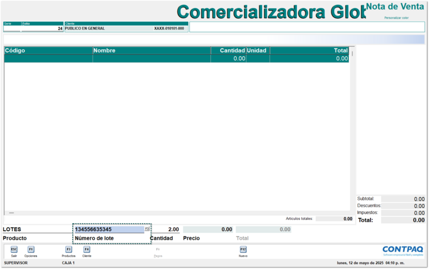 - El producto se agregará cuando exista disponibilidad en el almacén asignado a la caja, de lo contrario no se permitirá adicionar dicho producto, por lo que la existencia se validará de acuerdo con el almacén asignado a la caja.