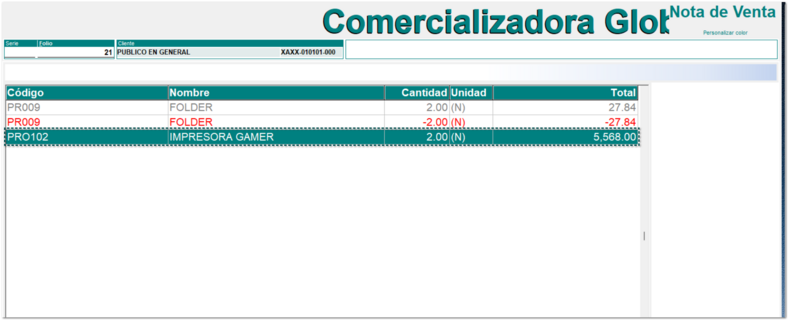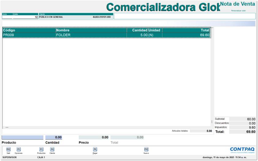 Presiona la tecla <Enter> para agregar el producto a la Nota de venta.