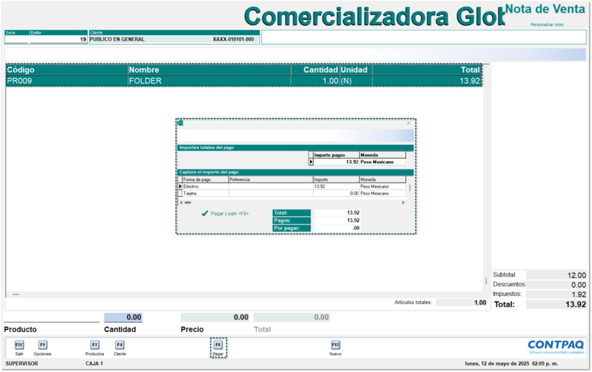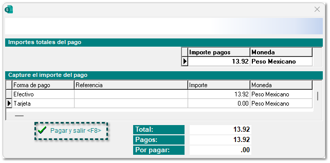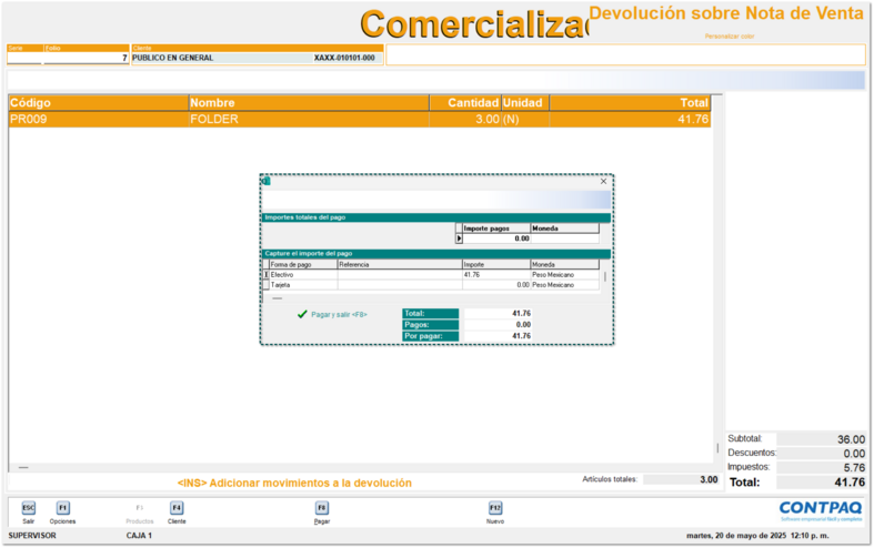 - Una vez que hayas ingresado todos los productos, presiona <F8> para ir a la pantalla de pago.