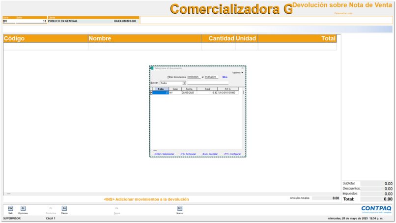 | | ConsideraciónAntes de realizar cualquier venta o devolución, no olvides asignar al cliente a través del botón <F4>. |