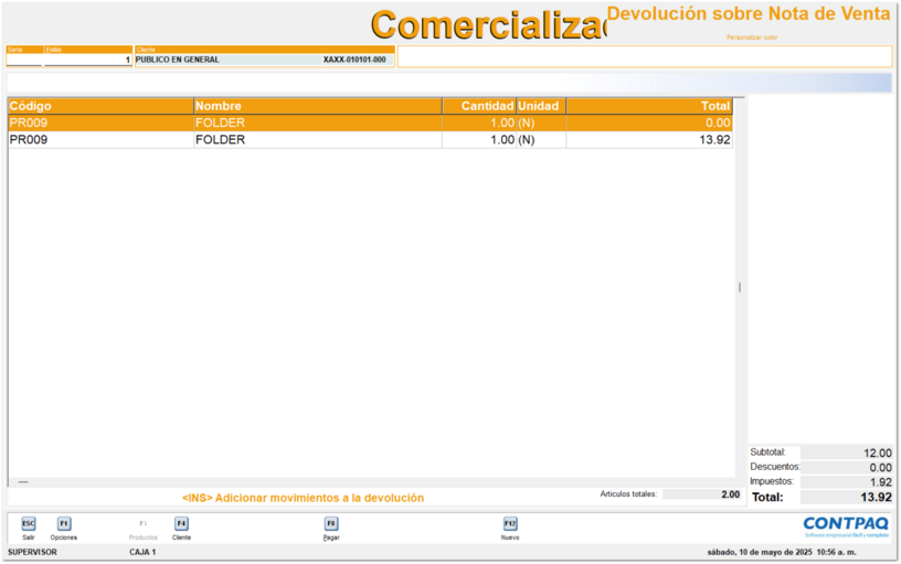 - Selecciona el cliente con la tecla <F4> o usa uno genérico para mostrador.