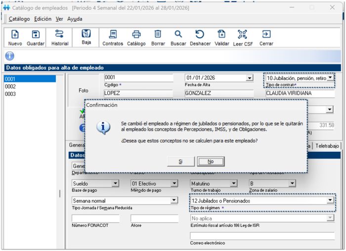 Cuando un empleado se configura con este régimen, el sistema realiza automáticamente varios ajustes importantes, entre ellos: