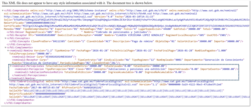 Generación del nodo XML JubilacionPensionRetiro
