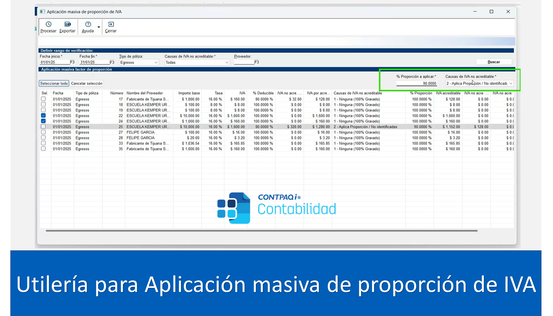 🆕 Nueva utilería para aplicación masiva de proporción de IVA en CONTPAQi® a partir de la versión 18.3.0